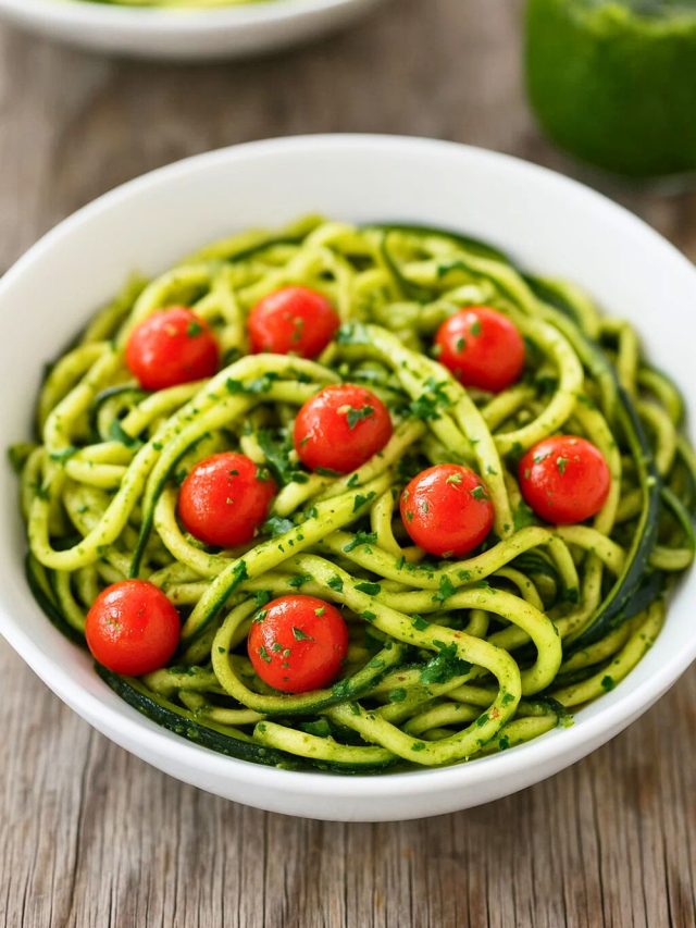 There is something so refreshing about a bowl of zucchini noodles tossed in bright green pesto. It feels light, vibrant,