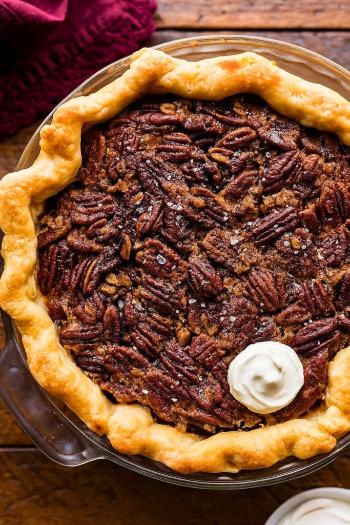 The flavor is layered and indulgent. Maple syrup gives this pie a deeper sweetness than sugar alone. Combined with toasted pecans, the taste is nutty, rich, and slightly earthy, making every bite satisfying.